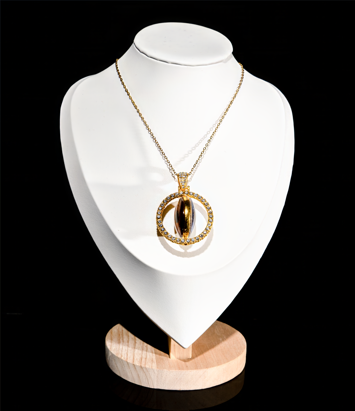 Deux regards réunis dans un seul bijou.Un pendentif double face, créé à partir de deux photographies d’iris, en acier inoxydable, finition or ou argent.